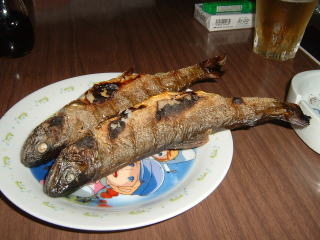 釣った5匹は,骨酒と塩焼きにしてもらいました。