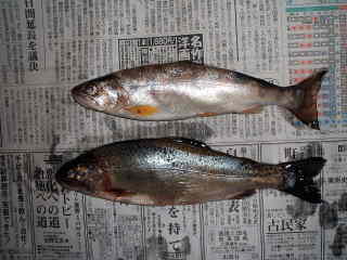 野尻川では,9月に釣り大会があり,ニジマスの放流がありますが,その生き残りか!それにしては小さい・・・。何だろう。