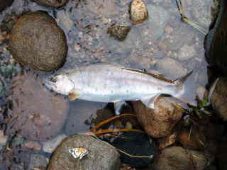 すごい手応えが,まさか,また例のニジマス?でもちょっと白っぽいような。