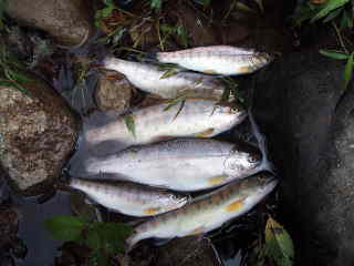 エサがなくなってしまったので終わりにしましたが,前回まで,ほとんど釣れなかったヤマメがこんなに釣れるなんて・・・。