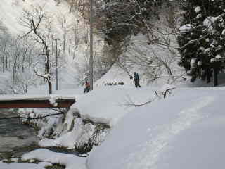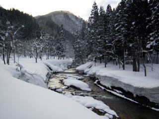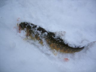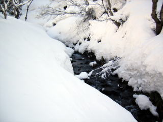 本流は,雪でさおを出すのもむずかしく,あたりも全然ありません。