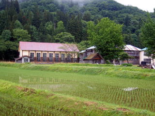 昭和村には,廃校になった学校跡がいくつかあります。この写真は喰丸にある小学校跡です。木造づくりの校舎です。