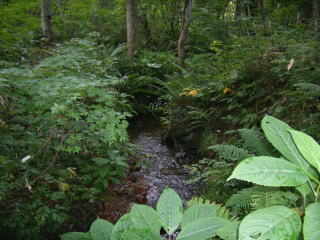 しょうがなく沢に入りました。