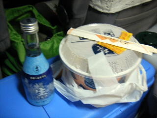 現場に夜中につき,車の中で一人で宴会。これも楽しみのひとつです。