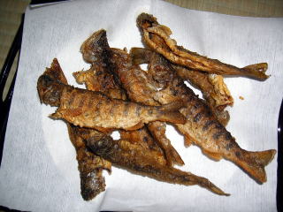 木っ端ヤマメもおばちゃんの腕で,おいしい唐揚げに変身させてもらいました。