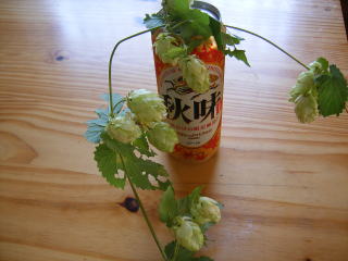 しょうがなく,見つけた野生のホップを持ち帰りました。