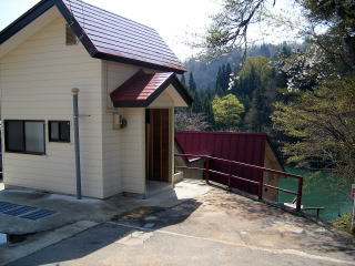 只見線の田子倉駅です。 ただの小屋のようです。ホームには階段を下りていきます。