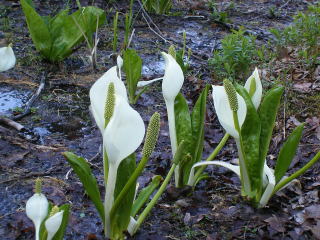 矢ノ原湿原では,水芭蕉が盛期を迎えていました。