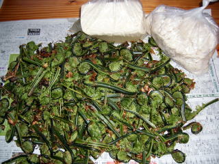 コゴミは,太いのだけを選りすぐってもこれだけ採れました。