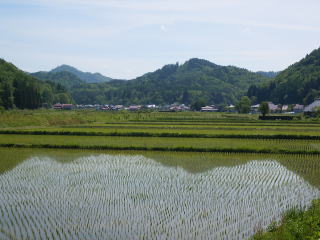 昭和村は,田植えも終わり,山は濃い緑色に変わっていました。