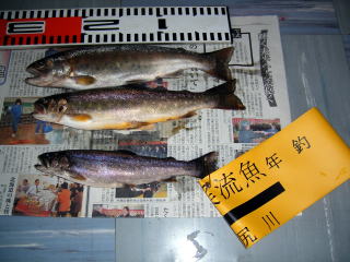 どうにか,三尾釣れました。一番上はヤマメです。