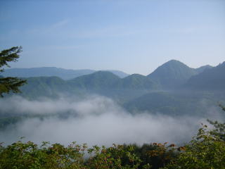朝靄が野尻川沿いを覆っていました。写真は博士山方面です。