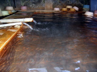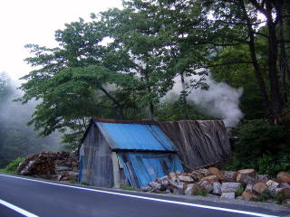 八町温泉はお気に入りの温泉です。写真の向こう側の管が玉梨源泉,手前が八町源泉です。