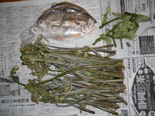 写真は,ヤマメの塩焼きとタラの芽,コシアブラの天ぷらです。