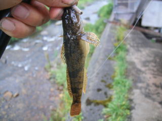 上流の落ち込みで,34㎝のイワナが釣れました。覚悟の上,護岸から飛び降りてのキャッチです。