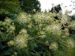 渓流沿いにはウドの花が花火のように咲いていました。来年採るために場所をチェックしました。