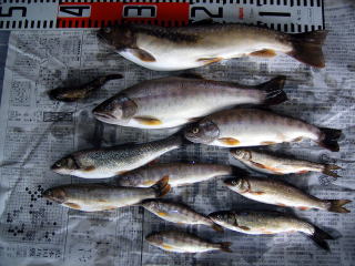 昨日飲みながら,中島屋のおじちゃんがこんな話をしていました。その話によると,この前来た釣り人が,玉川の上流で「丸太のようなイワナ」が小魚を追っていた姿を目撃したそうです。