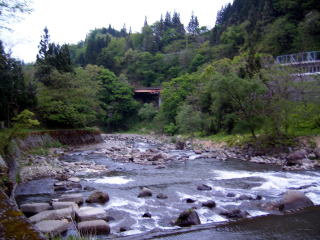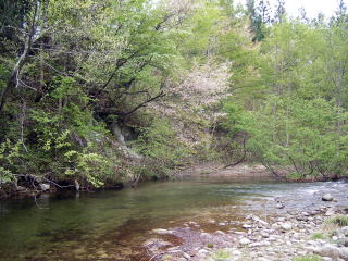 玉川上流にも行きました。野尻川とちがって水が澄んでいます。イワナが悠々と泳いでいる姿が見えました。