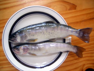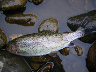 さらに大物の手応えです。ヤマメのようですが,なんかちょっと違います。なんとニジマスでした。がっかりです。ちょうど30㎝ありました・・・。