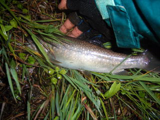 いきなりあたりです。かなりの大物です。尺物か。と期待してメジャーをあててみると,すこし足りない。数回計り直してもだめでした。いやな予感です。