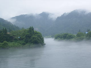只見川には川霧が発生していて,幻想的な風景になっていました。