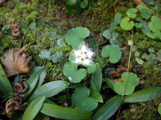 左の写真は川沿いにあった山野草です。五角形で純白の花弁です。