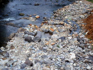 ちょっと掘れば完璧な足下湧出野天風呂になります。これで入れたら温泉のページ星五つ間違いなしです。