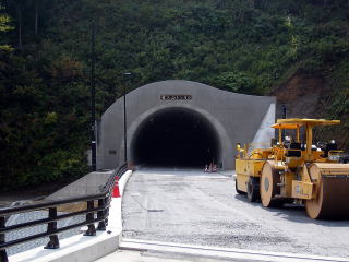 舟鼻のトンネルですが,10月16日開通だそうです。舗装も終わって,ライトが灯っていました。