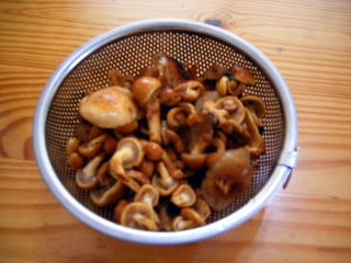 その代わり,(釣りなのに)ナメコを発見。初めてです。キノコの本に載ってた写真と全く同じ光景です。倒木の所々から株が出ていました。