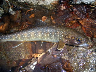 ヤマメが5尾,イワナが2尾釣れました。ヤマメはたぶん昔放流したものの子孫でしょう。