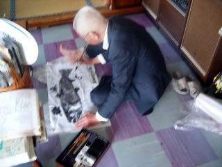 おじちゃんに魚を見せたら,魚拓に取ってくれました。