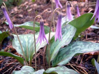 沢沿いには,カタクリがちょうど盛りで,可憐な花を咲かせていました。