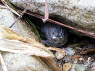 川ガラスの雛が川原にいました。まだ飛べないようです。近くで親鳥が心配そうに鳴いていました。