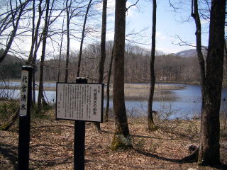 矢ノ原湿原はまだ冬景色です。 代官清水の看板が新しくなっていました。