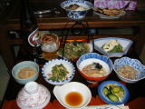 夕餉が始まりました。アサツキ,コゴミ,アイコ,コシアブラ,山菜のオンパレードです。