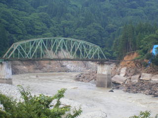 すこし上流にも車を走らせたのですが,只見線の鉄橋が流されてたり橋が流されてたり,家屋は水に浸かったあとの後かたづけです。本名ダムはなんとオーバーフローした後がありました。