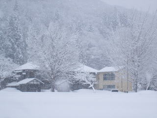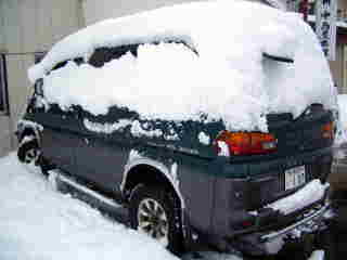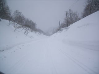 塩原を過ぎたあたりから雪が舞ってきて,昭和村に入った頃には吹雪になっていました。スペースギアで正解です。