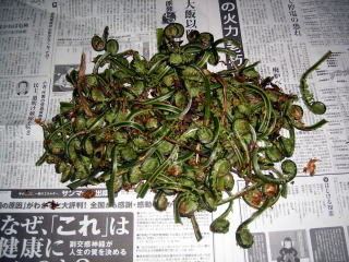 コゴミはちょうど摘み頃でした。約1㎏の収穫です。