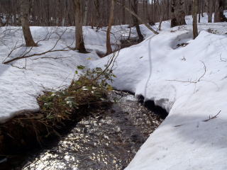 久しぶりでしたので寝過ごし,出発してからルアーセットも忘れたことに気づきましたが,とりあえず2013年のイワナの顔を拝みたいとせっせと雪原を歩き出しました。