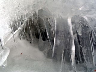 途中,雪の洞窟があり,鍾乳洞のように氷が柱をつくっていました。