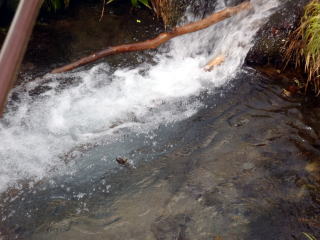 右下の画像は,イワナが釣れて水面に姿を現した画像です。23㎝でした。もっと大物もいたのですが,ミミズを見ても喰いませんでした。