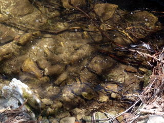 右上の画像は,いつも釣りをしていた堰堤のたまりです。驚くことに尺近いイワナが数尾泳いでいました。三年も禁漁が続いてるので成長したのでしょう。