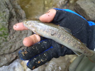 1尾釣れば骨酒は飲めるので,前回釣れた沢に入りました。ねらいどおり,骨酒サイズのイワナが釣れました。