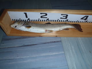 以前釣った62㎝のイワナの魚拓のコピーを階段の横に飾ってもらいました。