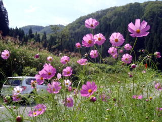 すすきの写真を撮ろうと考えて走っていると,コスモスが咲いていました。こちらもいい感じです。