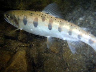 「 オ,オ,オー,キター,でかい」 光具合からヤマメのようです。