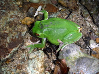 帰ってからネットで調べたらモリアオガエルでした。はじめて見ました。