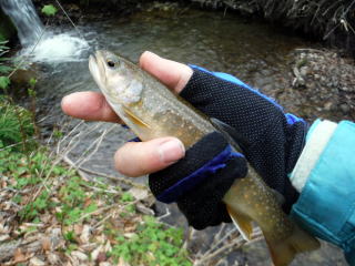 前回発見した堰堤で、レギュラーサイズのイワナが2尾釣れました。1尾はリリース。ここは穴場ポイントになりそうです。
