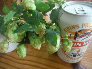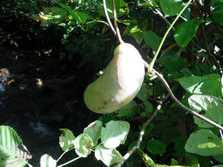 カラハナソウ(ホップ)を摘んだり、道具の片付けをしているとまっちゃんがアケビを見つけました。でかいです。