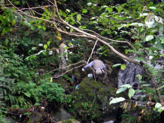 自分は着替えをすませて温泉に行く準備万端ですが、二人はまた沢を登っていきました。